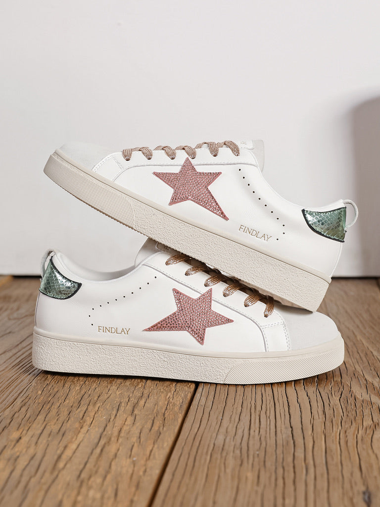 - Étoile rose ornée de strass scintillants sur le côté, un détail glamour qui attire l'œil.