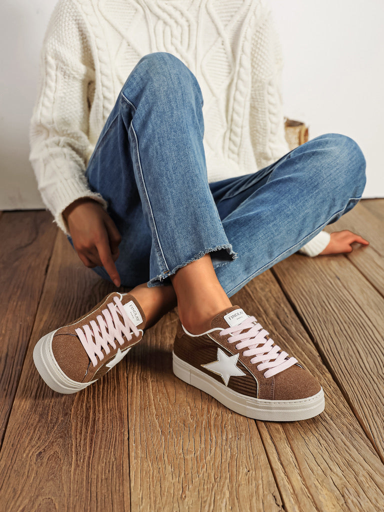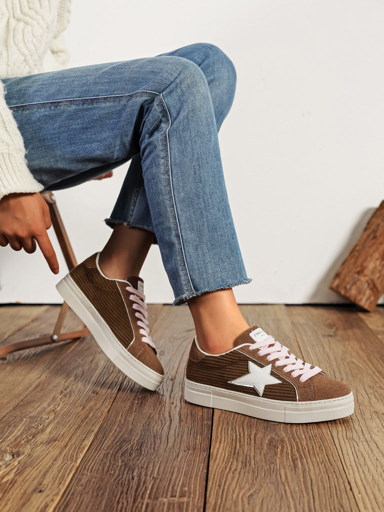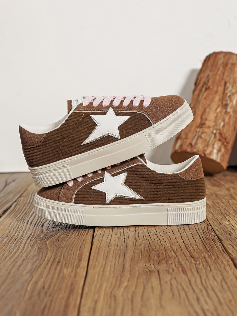 Baskets en velours côtelé marron rehaussées d’une étoile blanche emblématique.