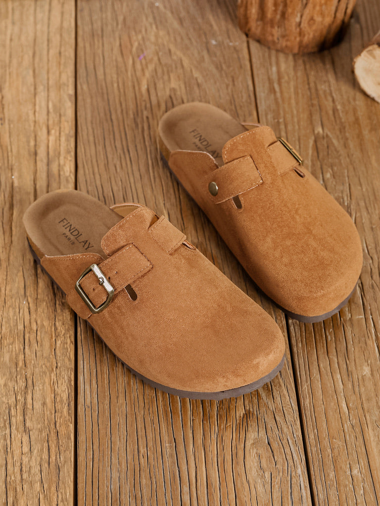 Sabot en suédine camel à l’allure minimaliste et intemporelle.