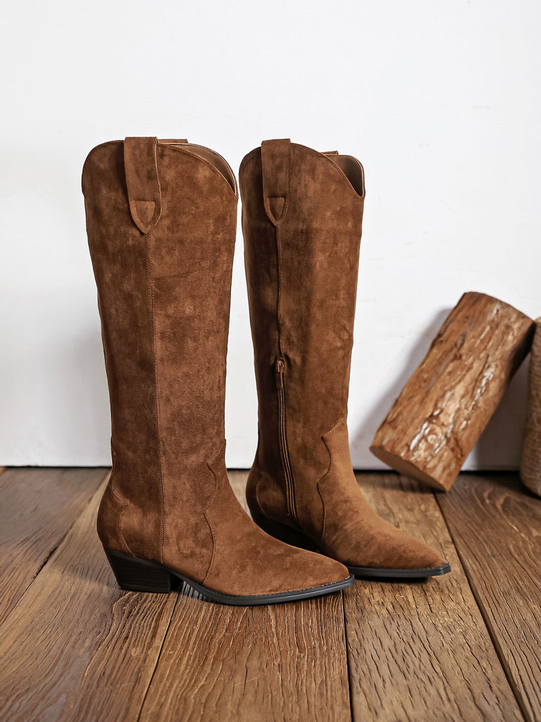 Laissez-vous séduire par ces bottes hautes à l’allure western. Avec leur tige élancée et leur talon biseauté, elles apportent une touche tendance et affirmée à vos looks, tout en restant confortables à porter au quotidien.