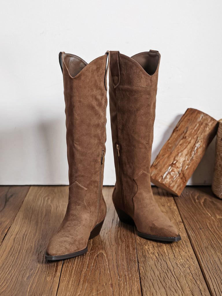 Laissez-vous séduire par ces bottes hautes à l’allure western. Avec leur tige élancée et leur talon biseauté, elles apportent une touche tendance et affirmée à vos looks, tout en restant confortables à porter au quotidien.